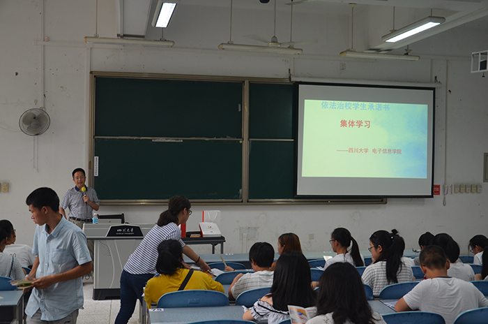 在此次宣讲会上,孟滋常老师给同学们讲述了依法治校的重要性,并告知同学们,一定要做一个遵纪守法的当代优秀老员工,那些违法违纪的事情不应该去做。接着,孟老师给大家发放了员工承诺书,让大家把遵纪守法时刻放在心中,做一个优秀的川大人。最后,同学们都十分积极的响应,并由老师收取了承诺书。