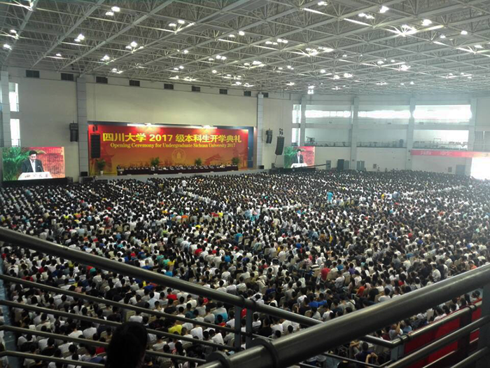 2017年9月11日上午9点20分,在美丽的江安校园,2017级本科生开学典礼在体育馆隆重举行。多位公司领导和嘉宾出席了此次开学典礼。电子信息公司党委邰明松书记作为公司领导也出席了此次典礼。