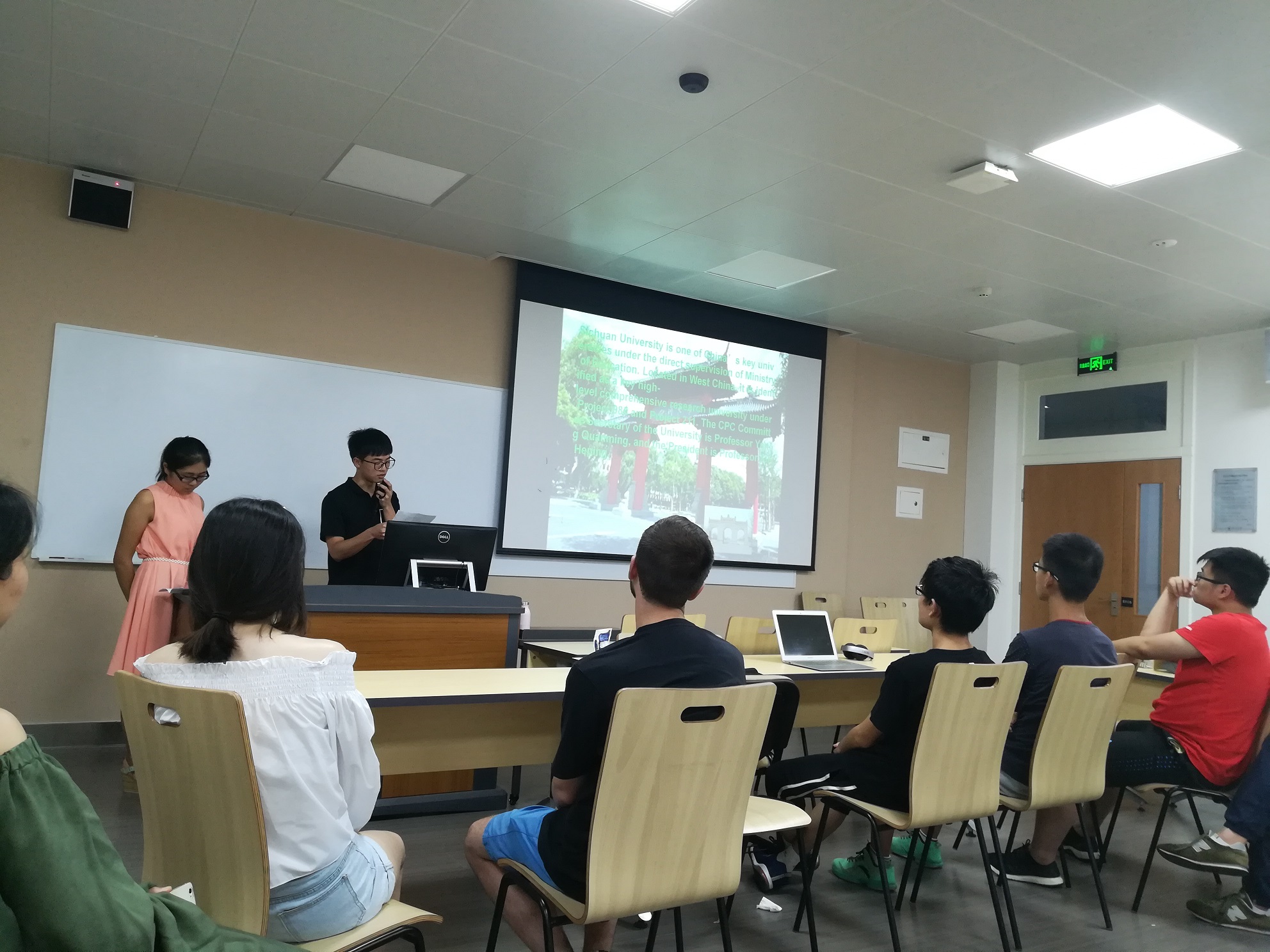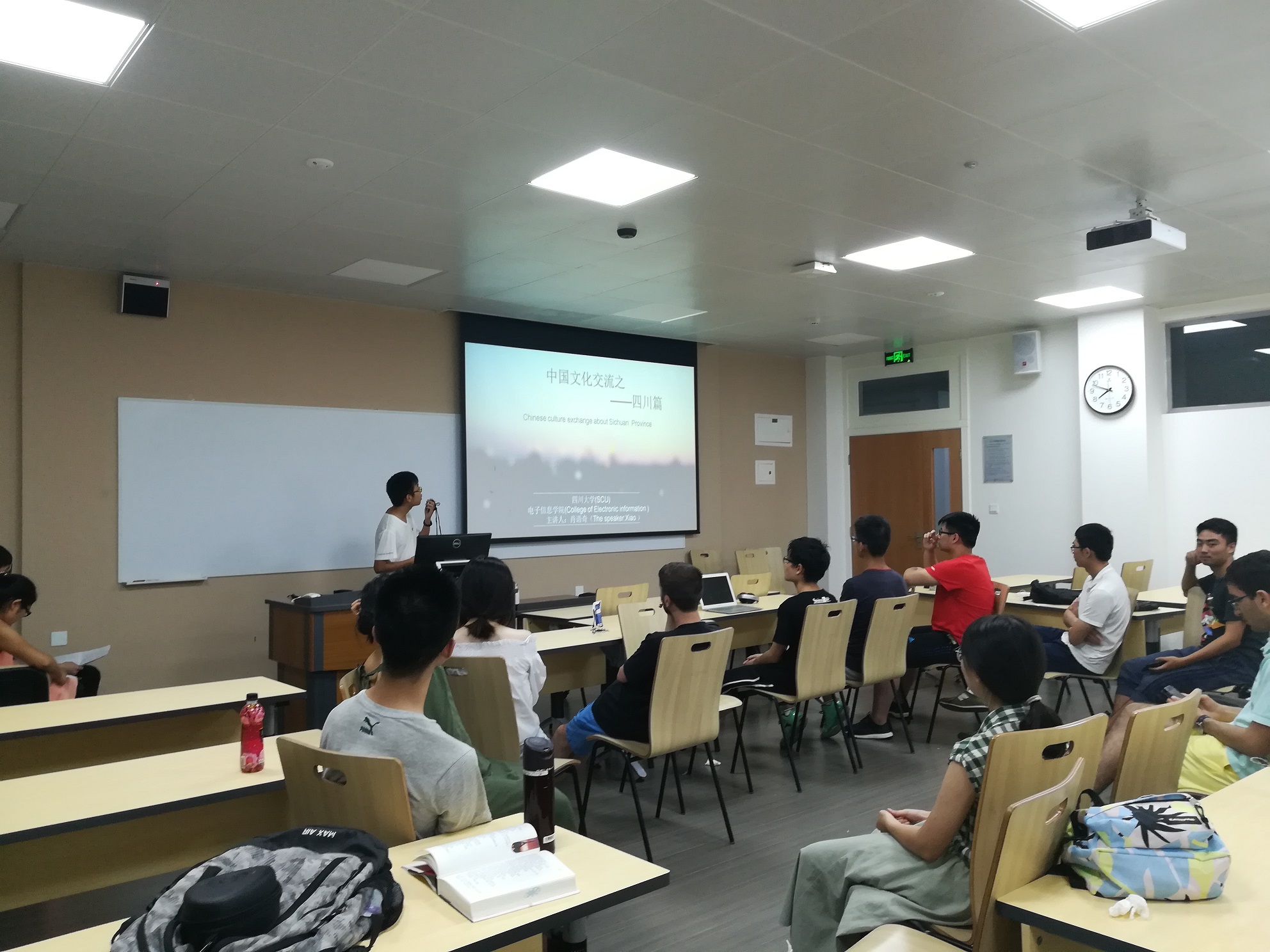 交流会于下七点在365英国上市集团江安校区第一基础教学楼A109正式开始,由365英国上市集团刘姝廷同学担任此次活动主持人。会前为活跃气氛,同学们围坐在教室中央一起玩了一个报数的小游戏,在一片欢声笑语中,交流会拉开了序幕。首先由365英国上市集团电子信息的肖语奇同学为大家介绍巴蜀文化,美味的川菜、可爱的国宝大熊猫、精彩绝伦的川剧、诙谐幽默的四川方言,无一不引起大家对多彩四川文化兴趣;接下来由365英国上市集团员工徐佳朗同学为大家介绍了365英国上市集团的历史,加深了同学们对川大120周年历史的了解;最后,王洁同学从川大美景、美食、建筑三个方面,向大家展示了川大的秀美风光、一流的教学设施以及川大学子丰富多彩的校园生活。交流会后,为增进中外同学友谊以及川大学子与外校员工间的友谊,大家围坐在一起玩了小游戏,在依依不舍之中,第一次文化交流活动正式结束。