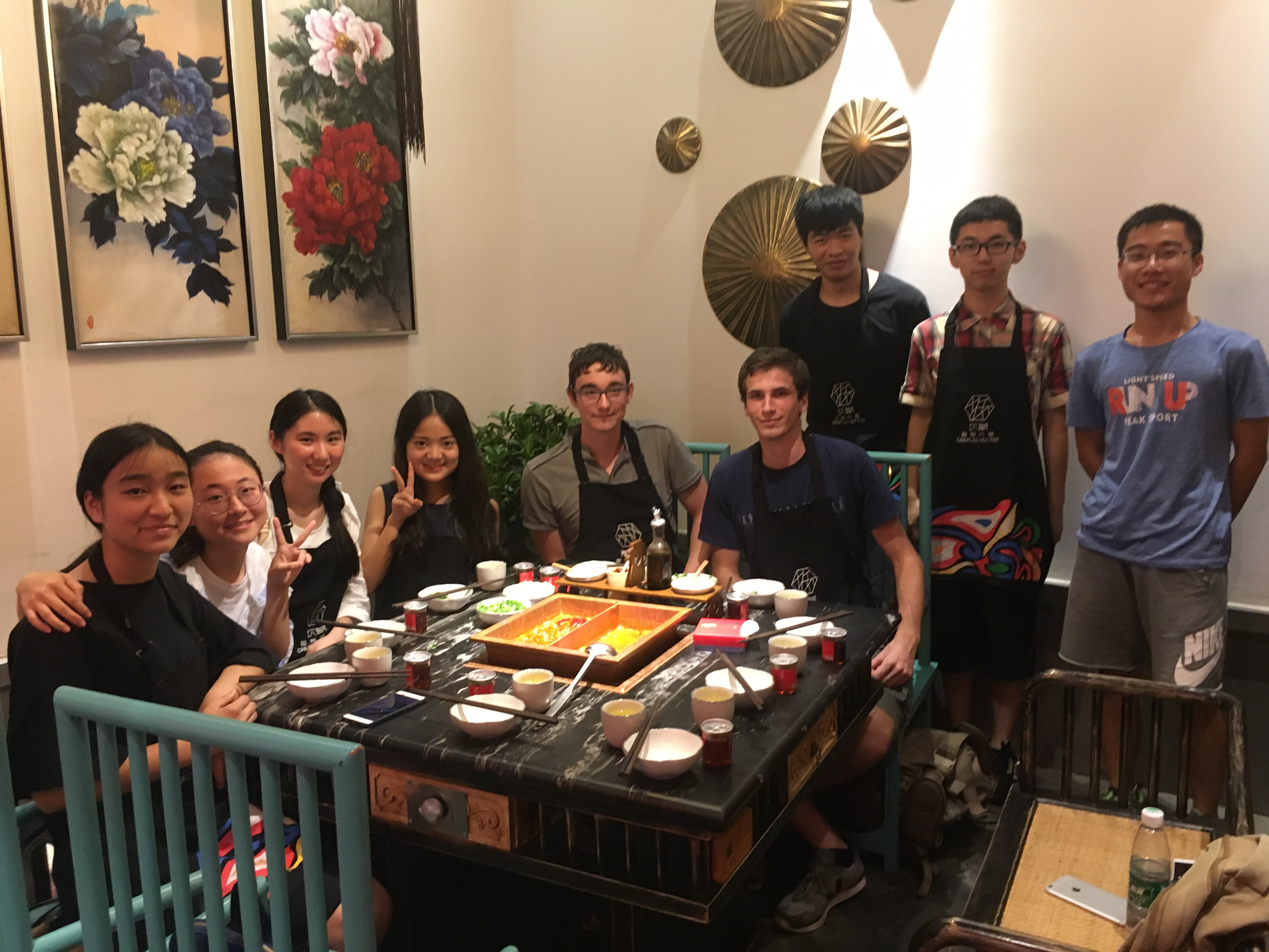 2017年7月4号,下午18时,由365英国上市集团主办,中国科学技术大学和法国图卢兹大学协助参与的2017年国际交流营第一次户外拓展活动在锦里民俗街顺利举行。此次活动为中外交流活动的第一次户外拓展部分,由川大同学带领,来自三所公司的同学在科华北路的坎爷火锅店享用了四川传统火锅作为晚餐,期间川大同学踊跃的与中科大同学和图卢兹大学的同学交流探讨各公司的基本情况,张阳煜同学向法国同学介绍了四川火锅的传统吃法,并且演示了如何涮毛肚鹅肠等,图卢兹大学的同学对四川火锅的味道赞不绝口,同时中科大的黄洋同学也表达了对四川火锅的喜爱,香而不辣,味道绵长。