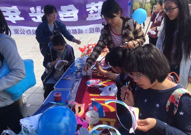 活动过程中,志愿者们首先绘制了几个面具以激发同学们的好奇心及积极的参与,之后便要对参与者讲述我们具体的活动内容及意义,吸引更多的人参与到活动中来,以达到此番活动最终的目的。在此期间志愿者们还要担负起答疑解难的任务,这很大程度考验着志愿者们的耐心。摊位上有过热火朝天,有过冷清无人,更多的时候只是志愿者们几个加上三三两两的参与者,毕竟公司是三点一线的生活,大家出门便是上课或是有事,时间的消费很大程度上影响了参与度,还好提前印刷的传单给了自闭症儿童们被无法实时参与的同学了解的机会。但令人惊喜的是第二天上午提前准备的物资就已经消耗殆尽了,活动达到了其预期的效果。每班的活动接近尾声时,志愿者们要完成轮班制度也给志愿者们带来的额外任务——向下一班的志愿者讲述活动细节和注意事项。最后,在服务队队长的带领下,志愿者们完成了物资的归还,活动圆满完成。
