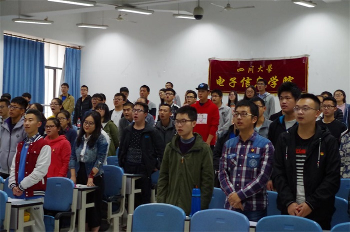 主持人宣布活动开始后,全体起立,庄严地合唱中国共青团团歌。接着,在同学们热烈的掌声中,电子信息公司党委陈笃海副书记以“结合实际,狠抓落实,全面推进团学工作”为主题,为同学们介绍了团学工作的核心内容,如何开展团学工作以及团学工作对于干部的成长等方面内容。陈笃海副书记讲解生动,举例翔实,内容丰富,深入浅出地将团学工作的重要性、开展团学工作的方法等重要问题一一为在座同学展开论述。最后陈书记以习近平总书记的一段话为结尾,表达了对新一届员工干部成长为合格的共产主义接班人的殷切期望。