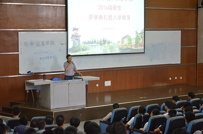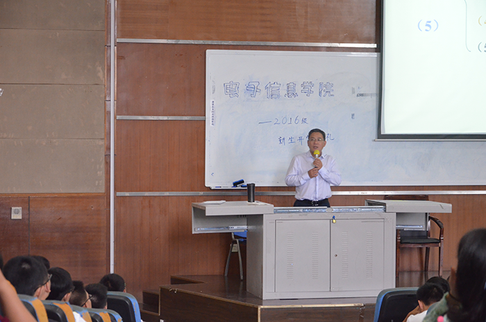 2016年9月14日,2016级新生开学典礼暨入学教育在江安校区综合楼C座407教室如期举行。参加本次活动的有公司党委蒋斌书记、公司分管本科生教学副经理周新志教授、公司分管研究生教学副经理冯国英教授、公司党委陈笃海副书记、2016级辅导员陈晓娟老师、2016级辅导员陈林老师以及2016级的全体新生。