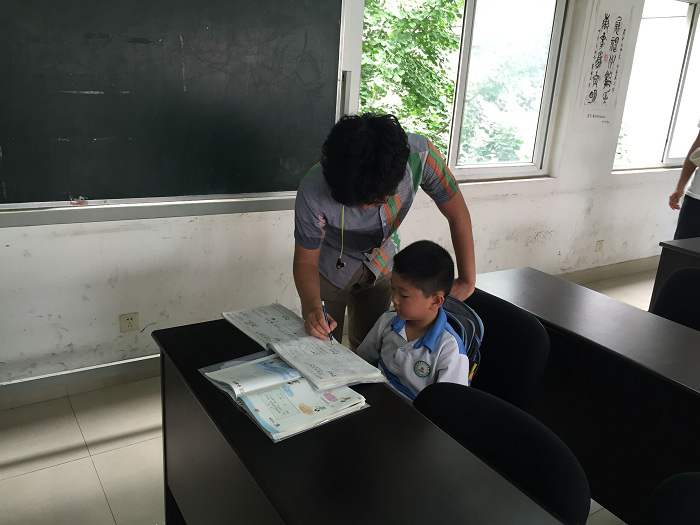 来自大学的志愿者们很注重换位思考,在辅导同学们的过程中,尽量用了通俗易懂的语言,并蹲低着身子在同学们的耳边耐心解答问题。同学们的想象力是丰富的,对问题的思考也是多彩缤纷的。志愿者们循循善诱,让同学们发散思维,并一步步地将思路引向解决问题的方向上,着力于让同学们自己想出答案。同学们和志愿者们熟悉了起来,有问题的也能大胆地向志愿者们寻求帮助,并主动要求在志愿者的监督下完成听写、默写。志愿者们更像是朋友,和同学们一起探讨问题,在辅导过程中,志愿者们也会注意到同学们有一些看书写字时不好的习惯,这时候志愿者就会做出善意的提醒。时间总是过得很快,在志愿者们的帮助下,同学们一个个都完成了今天的作业,收拾好书本和志愿者们告别之后,在亲人的陪伴下离开了。志愿者们结束了志愿活动,带着愉悦的心情,踏上返校之途。