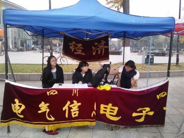 此次的宣传活动由经济、电子、电气三个公司分科协的干事们一起负责,大家各司其职。早晨负责摆摊的同学早早来到指定地点布置好摊位,负责发送传单的干事们都打起了十二分精神,将比赛的相关情况向路过的同学做了介绍。