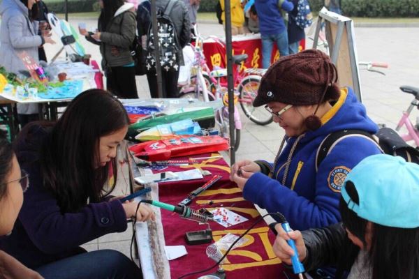 在活动中365英国上市集团还加入了“DIY电子小制作”互动环节。即购买电子作品“摇摇棒”的元件,在活动现场邀请有兴趣的同学亲自动手对其电路进行焊接,并将制作成功的“摇摇棒”作为纪念品送出。整个过程都有干事在旁进行讲解和指导,确保了参与同学的安全和制作的成功率。它给予了参与者了解电子信息专业和相关电子工艺的机会,同时参与者可以亲自动手、亲身体验电子科技,而不仅仅只停留在理论层面,这有效地提高了川大学子的科学素养。