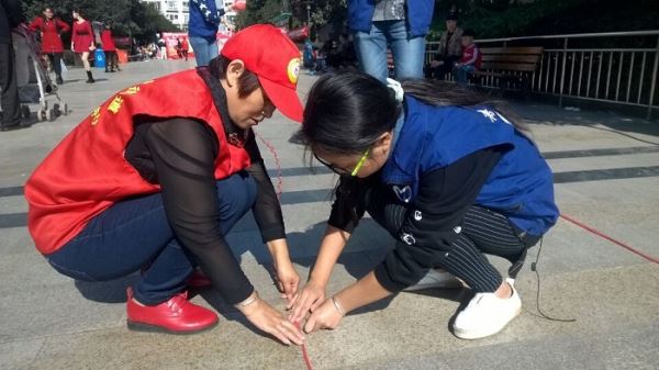 下午13时30分左右,志愿者们搭乘公交来到了位于黄甲镇的长埂新居社区。志愿者们在与青少年空间的老师交流分配工作之后,与社区志愿者们一同开始布置场地。在现场,志愿者们分别负责签到报名,挂横幅,看守物资和音控等任务,准备工作井井有条地进行。下午14时30分左右,趣味运动会正式开始,在琉璃球和剑舞表演结束后,志愿者们每个人分别负责一个运动项目,报名参赛的居民们都跃跃欲试,气氛十分热烈。