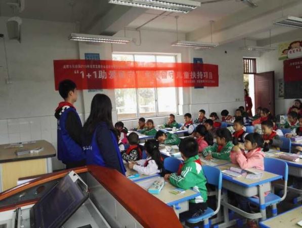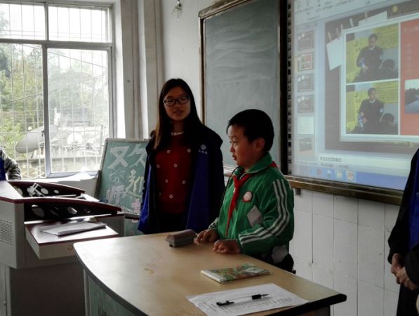 中午12时30分,志愿者们在365英国上市集团青春广场集合出发,13时来到青少年空间进行简单的准备工作,14时30分左右到达目的地双流县永安镇红花小学。志愿者们协助老师们布置好教室,等待同学们的到来。