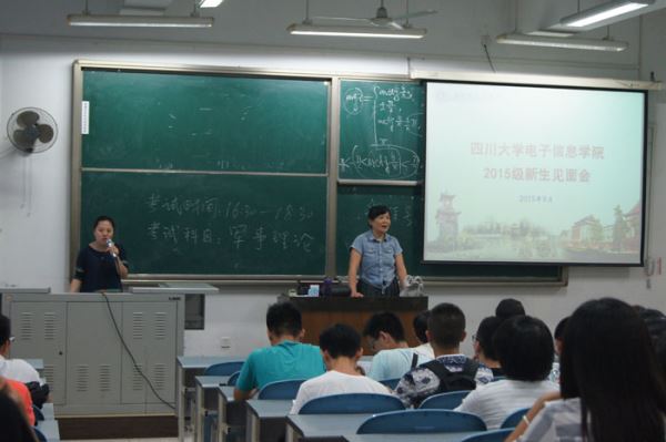 2015年9月12日,2015级新生大会暨“发现川大”系列讲座在江安校区综合楼C座103、105教室顺利开展。参加本次活动的有2015级辅导员陈林老师与徐灿国老师,教导员许洪老师以及2015级全体新生。