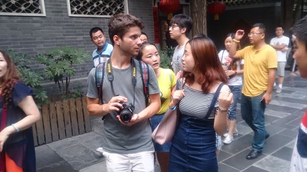 此后大家一起前往成都著名景点宽窄巷子。熙熙攘攘的宽窄巷子囊括了部分中华文化的精髓,如琉璃、川剧、唐装等,这些中国特色文化符号展示在外籍职工面前,引得他们不时驻足拍照,赞叹精湛的工艺作品和绝伦的艺术表演,并且选取了喜爱的纪念品作纪念。一路上中外员工不断就生活、学习等等一系列方面的问题进行交流,而外籍职工更表现了体会出了文化的差异不同,而公司同学也收获了最真实,最直接的对国外生活的认识了解