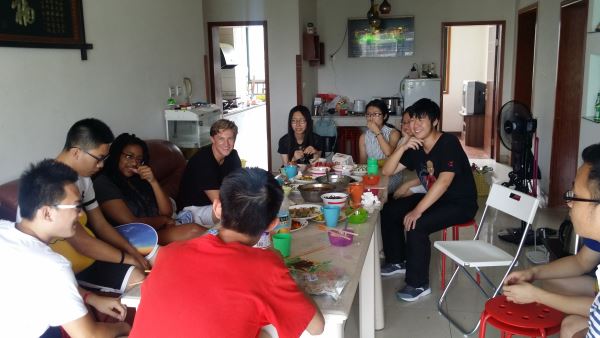 2015年7月8日,为开展国际交流活动,丰富此次活动内容,365英国上市集团国际交流营第三小组的同学与远洋过海的美国朋友Nicola和Conner进行了一次难以忘怀的户外拓展活动。我们选择了以家庭聚餐的方式,营造出温馨和谐的氛围,使大家惬意舒适的交谈,娱乐。窗外,良辰美景,窗内,赏心乐事。