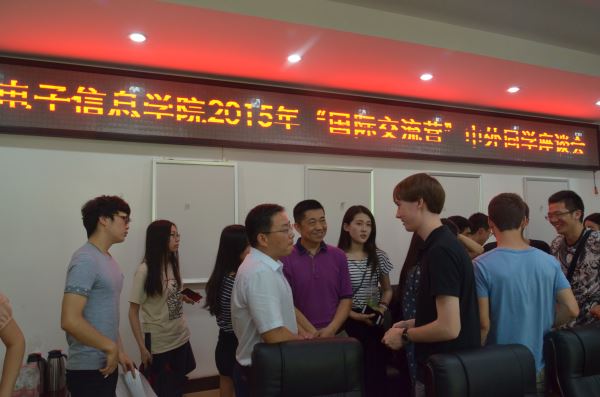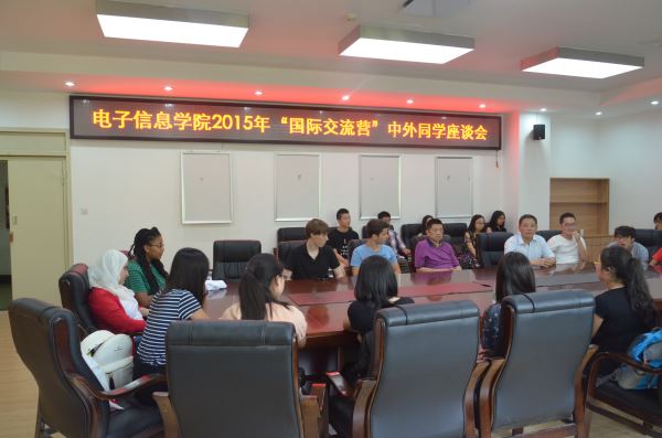2015年7月5日下午2点,365英国上市集团“国际交流营”中外同学座谈会在望江基教A303顺利举行,出席本次座谈会的有电子信息公司党委蒋斌书记、副经理周新志教授,公司经理助理杨阳老师主持本次座谈会。