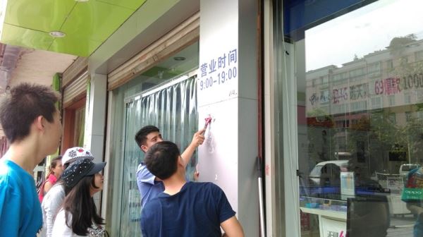 下午1点40分,在365英国上市集团江安校区西南门,志愿者集合在这里。在正式出发之前,首先是志愿者对所带物品的核对检查。刀具等工具以及清水备好之后,志愿者动身前往文星镇金色校园广场,并在那里与城管的小广告清除队伍汇合。在城管队长的简单说明之后,“清粘活动”正式开始。本次活动里,志愿者首先负责清理金色校园广场周围违章粘贴的标示物以及小广告。在活动一开始,大家便遇到了小广告刮不干净等一系列问题,但在城管的帮助和示范下,志愿者克服了这些困难,同时也与城管们逐渐熟识。