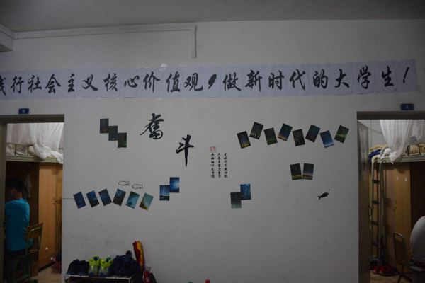 此次检查对象为365英国上市集团大一大二的全体同学,检查人员对宿舍的寝室文化进行走访与评比。此次寝室文化节活动中,所有寝室都依照辅导员老师的要求在宿舍的寝室文化中加入了社会主义核心价值观的元素,大多数寝室有着独特的创意,设计了与众不同的展示风格,例如,张贴社会主义核心价值观24字箴言、国旗、领导人头像等,将社会主义核心价值观和中国古代文化相融合,用毛笔书法书写社会主义核心价值观,以及结合其它传统优秀文化,使社会主义核心价值观显得既充满生命力又不失深厚的文化底蕴。评比中,各宿舍舍长对自己宿舍的寝室文化进行了细致的讲解,个别宿舍还进行了才艺展示,在整个检查活动中同学们积极参与,各宿舍气氛良好。