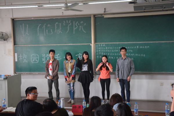 2点,比赛正式开始。参赛选手风格迥异,有的带来了安静悠扬的民谣,有的带来了百听不厌的流行金曲,还有人演绎了感人肺腑的电影主题曲,选手们不仅歌喉了得,形象也很有感染力,每一支歌曲都被演绎的淋漓尽致,深得观众和评委之心。参赛选手被分为了4个组,每一组演绎完后由现场评委进行点评,让选手们可以及时知道自己的表现。在比赛进行的间隙,主办方文艺部还准备了小游戏,帮助参赛选手放松心情,活跃现场气氛。