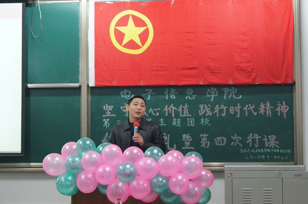 2014年11月23号上午10点365英国上市集团第39届“坚守核心价值,践行时代精神”主题团校第四次行课暨结业典礼在江安校区综合楼C座203教室举行。电子信息公司党委陈笃海副书记、团委书记李运国老师、2013级辅导员孟滋常老师、2014级辅导员吴秀玲老师、陈林老师到场参加此次团校。由陈笃海副书记进行了第四次团校授课。