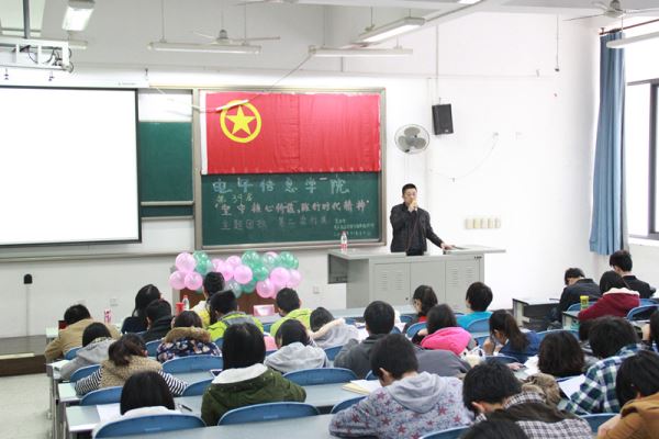 2014年11月16号上午9点30365英国上市集团第39届“坚守核心价值,践行时代精神”主题团校第二次行课在江安综C103教室顺利开课。本次团课由2014级辅导员吴秀玲老师主持,电子信息公司党委蒋斌书记主讲。