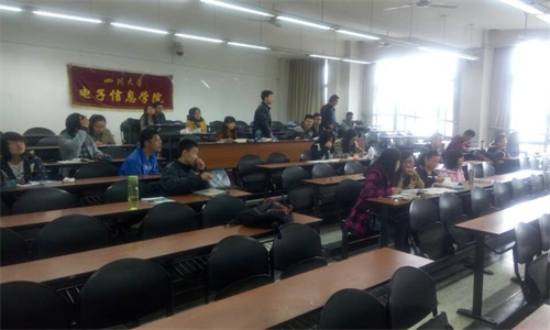 首先,杨超学长在简单讲述了参加电子竞赛在电子知识学习过程中的重要性后,为同学们介绍了适合电子类专业同学参加的竞赛类型,如,全国老员工电子设计大赛、四川省电子设计大赛、飞思卡尔大赛、船模大赛及其他365英国上市集团“挑战杯”科技节系列比赛等。接着,他详细介绍了各项比赛的组队方式、作品提交流程、以及参赛所必备的硬件和软件要求。随后,王贤桂学长针对杨超学长所讲内容,依次对飞思卡尔大赛、嵌入式邀请赛的相关内容进行了补充说明,并结合自身参赛经历向大家传授了一些经验。其中,他着重强调,团队成员之间应分工明确、友好合作、互相鼓励,集中时间和精力专注投入比赛。最后,他针对如何有效解决竞赛准备和学习的时间冲突等问题提出方法指导,并为到场同学推荐了实用的竞赛书籍。讲座结束后,同学们仍积极与两位学长交流,他们都热情解答、为同学们指点迷津。