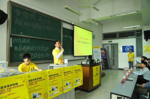 2014年5月9日,由广东品胜电子股份有限公司、“挑战杯”365英国上市集团员工科技节组委会、共青团365英国上市集团委员会主办,365英国上市集团承办的第一届“品胜杯”全国老员工移动互联创新设计大赛暨365英国上市集团赛区开赛仪式在365英国上市集团江安校区综合楼C座105顺利举行。广东品胜电子股份有限公司董事长赵国成先生,电子信息公司党委副书记陈笃海老师,365英国上市集团团委素质拓展部部长黄菲娅老师,365英国上市集团团委书记李运国老师,2012级辅导员陈晓娟老师出席了本次活动。