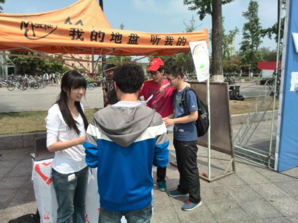 中午11时,爱护地球日宣传活动准时开始。此次活动以爱护地球为中心,活动主题是“善待地球,我们一起来行动”。活动摊位前播放着与保护地球相关的歌曲,如地球之歌等,展板上贴着志愿者们自己手绘的海报。但其主要活动还是有奖竞答环节。志愿者们事先准备了一百多条与地球相关的小知识,邀请同学们来回答。还有耳勺、胶带等小礼品相送。精美的海报,悠雅的歌曲,很快就吸引来大量的同学。他们积极地回答问题、参与活动。活动摊位前一片热闹的气氛。时间过得飞快,很快四个小时就过去了,活动顺利的结束。