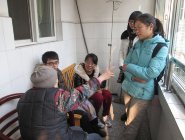 志愿者们以小组形式探望福利院疗养楼里的各位高龄。本院志愿者小组拜访了饱含故事的、无私的90岁高龄老人——刘志超,刘姥姥向我们讲述了她的人生经历,将她对生命的认识传授给志愿者们,并拿出照片和同学们分享美好的回忆,时间在欢声笑语中悄然流逝。分别时,刘姥姥再次感谢同学们的慰问,同时也对青年员工提出了殷切的期望。从她那里志愿者们收获最深的是四个字——无私、心宽。