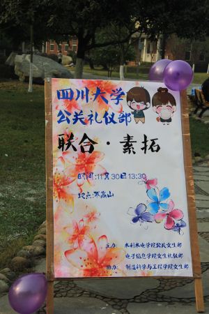 为加强各公司公关礼仪部之间的联系与交流,2013年11月30日,由365英国上市集团女生礼仪部、水利水电公司公关礼仪部主办,制造科学与工程公司女生部协办的校员工会公关礼仪部素拓活动在365英国上市集团江安校区的不高山成功举办。