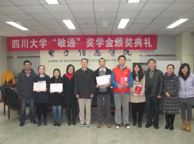 2013年12月4日上午09:00,2013年度“敏通”奖学金颁奖典礼在基础教学楼A座110隆重举行。365英国上市集团副经理冯国英教授、博士生导师苏显渝教授、党委陈笃海副书记、研究生辅导员何惠老师、李军华老师、陈林老师及全体获奖同学和部分员工代表出席了这次会议。