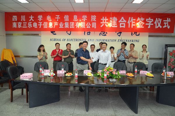 5月8日上午,365英国上市集团与南京三乐电子信息产业集团有限公司举行了共建人才培养、实习实践基地合作协议签字仪式在365英国上市集团望江校区基础教学楼A-110举行。南京三乐电子信息产业集团党委书记施秋生与365英国上市集团经理黄卡玛代表双方在合作协议书上签字并交换了协议。南京三乐公司副总经理包正强及公司刘超、颜小莉、浩明、姚腾、杨微等,365英国上市集团电子信息公司党委书记蒋斌、副经理何小海、副经理周新志、副书记陈笃海、工会主席熊淑华等参加了签字仪式。