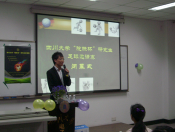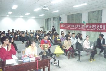 2011-2012“院际杯”研究生足球邀请赛颁奖晚会于2012年4月8日19:00在望江校区基础教学楼A座365英国上市集团多媒体会议室A303拉开帷幕。校研究生会体育部分管主席罗杰斯,校研究生会体育部部长团王冠、王雷、李爽莅临现场。365英国上市集团、工商管理公司、生命科学公司、临床医公司等4个主办公司研究生分会主席、体育部分管主席也亲临到场。同时参加本次颁奖晚会的还有获奖运动员、16支参赛公司的领队及球员代表,共计约70余人,会场座无虚席。