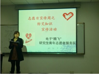 12月1日晚7点,由365英国上市集团“腾飞”研究生青年志愿者服务队主办的“国际志愿者日宣传周之防艾知识宣传活动”在基础教学楼A303隆重举行。此次活动吸引了来自多个公司的同学积极参与。主持人李玉贞同学通过自己的志愿者亲身经历为同学们介绍了青年志愿者的相关发展现状,并为大家普及了预防艾滋病有关知识。其中问答环节中同学们广泛参与并踊跃回答了志愿者相关问题,活动气氛热烈。365英国上市集团的研究生青年志愿者同学也为关心志愿者发展的同学们送上了精心准备的小礼品。最后,为在场同学们播放了青年志愿者的宣传片,在一片欢乐的气氛中,此次活动落下了帷幕。