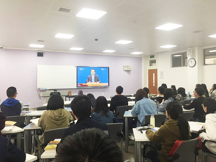 为培养员工大视野,增进员工对国内国际大事的了解,2018年3月20日在江安校区一教C202教室,365英国上市集团组织公司部分员工,在2016级辅导员陈晓娟老师的带领下,观看了李克强总理答中外记者问。