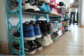 寝室里的鞋子被摆放得整整齐齐 孟滋常老师与同学们交谈