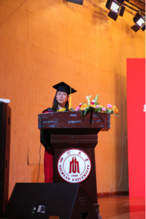2018届博士毕业生张华作为员工代表发言,回顾在校的点滴生活和在学习科研上所取得的成绩,眷恋不舍之情溢于言表,同时代表毕业生同学向母校、公司领导以及辛勤培育他们的恩师们表达了最衷心的感谢和最崇高的敬意,对曾经同窗的同学们表达了最美好的祝愿,并向主席台导师献花。