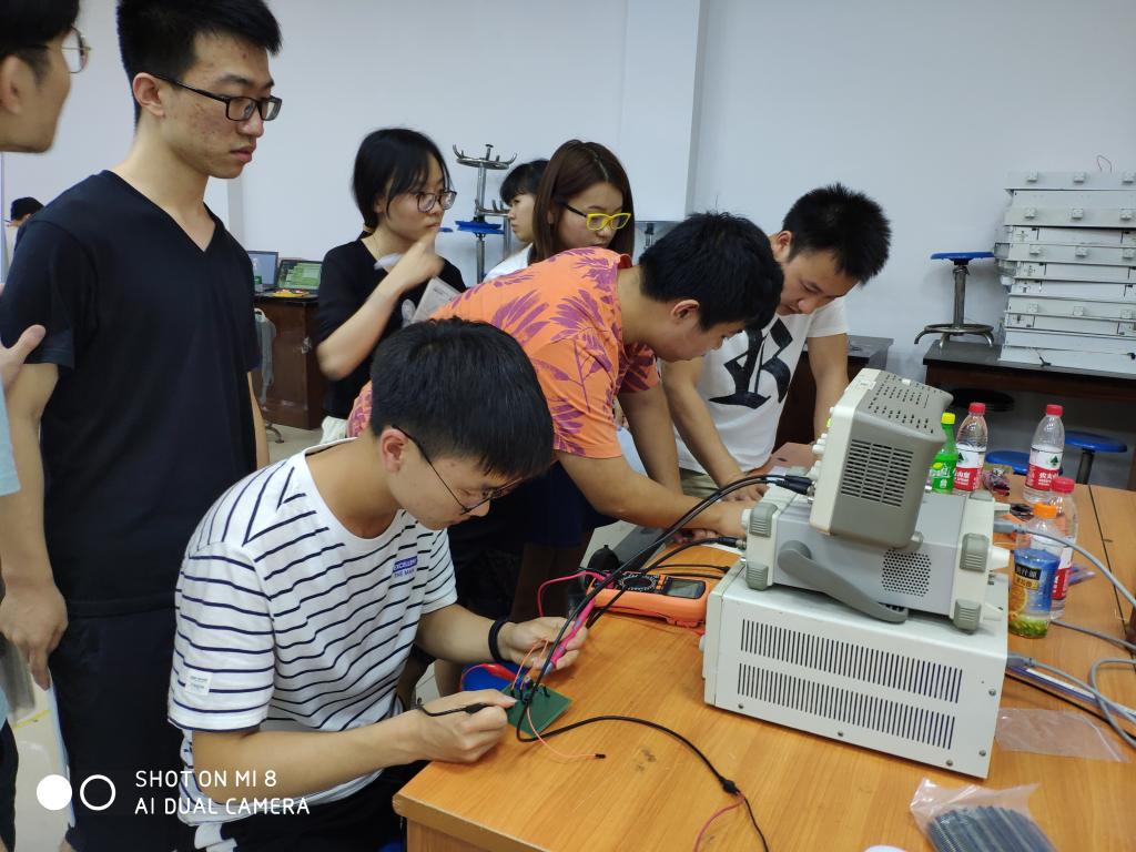 6月23日上午9点授课在望江校区创新实验室正式开始。授课老师首先向同学们讲解了仪器仪表的使用方法,并且对他们进行了相应的焊接技术的培训。接着,老师又给同学们讲解了软件方面的相关知识,让同学们对这方面的知识有了更深入的了解。上午的授课时间悄然而过。在下午的授课时间中,授课老师还向同学们讲解了器件选型、器件布局、STM32开发环境的安装、工程搭建以及库函数功能使用与模块化软件设计思想等。同学们一边听着老师的讲解,一边动手亲自实践,不时进行讨论交流,十分专注。本次授课也在这种热烈的氛围中落下帷幕。