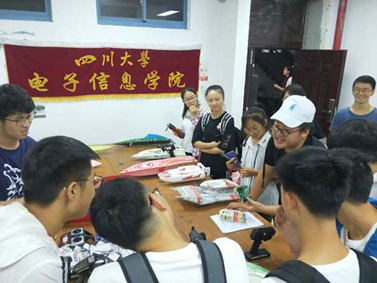 由于天降大雨,原计划由团委员工会主席团和部长团带领新生参观校园的活动被迫取消,但同学们的热情丝毫不减。上午十一点左右,同学们在江安校区知识广场集合,由团委员工会主席团带领他们进入电子科技园参观游览。