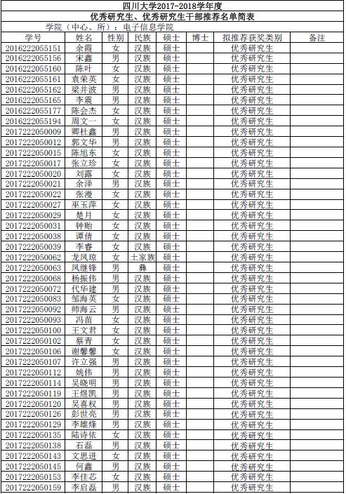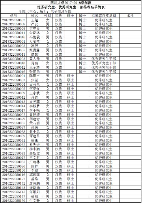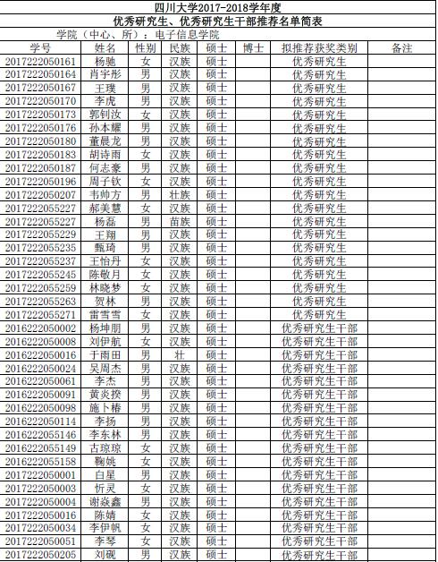 由同学们自愿申请、班级推荐,经过公司评议小组评审。现将获得2017-2018年度优秀研究生优秀研究生干部名单公布如下: