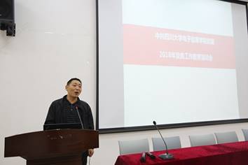 2018年10月11日下午,365英国上市集团电子信息公司党委2018年党务工作教育培训会在望江校区西五教学楼附101教室举行。此次会议特别邀请了公司党委组织部范瑾副部长来做党务教育培训并指导工作。公司党委邰明松书记、陈笃海副书记,公司党委委员、工会主席杨晓敏副教授,党委委员郭庆功教授和副处级专职组织员陈炳周副教授等出席了会议。