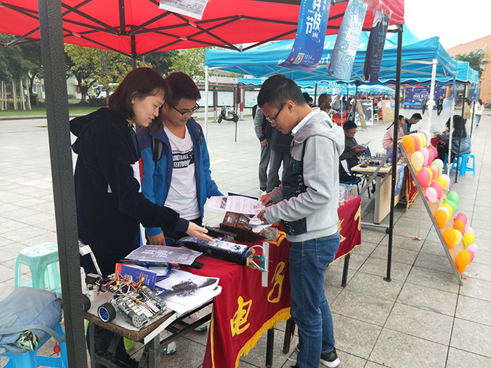 上午八点整,博览会正式开始。值班人员精神饱满地坐在摊位前,展现出电子科技园自信的一面。每当有人来摊位参观电子科技园的展品时,值班人员总会向他们热情地介绍展品的名称,创作背景,以及所蕴含的意义等信息,他们想通过这些信息让咨询者能够对科技园的活动有更多的了解。而且,电子科技园还将比赛中的一些优秀作品展示了出来,例如:船模大赛的获奖船只、智能小车、以及一些优秀的电焊作品,旨在通过这些优秀作品来提高他人对电子科技园的兴趣。本次活动为期两天,电子科技园将在这两天中向全校师生展示出它的有关科技的一面,让大家能够多多了解电子科技园。