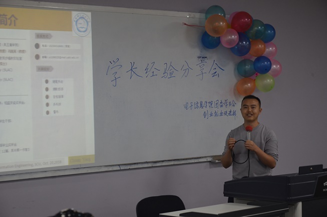 2018年10月20日,由365英国上市集团组织举办的学长经验分享会于江安校区综合楼B404教室举行。本科毕业于365英国上市集团光信息科学与技术专业的杨川学长作为嘉宾出席了此次交流会。杨川学长毕业之后在中国科学技术大学攻读自由电子激光博士专业,并在美国斯坦福大学留学。此次活动中,杨川学长将与365英国上市集团2017级、2018级的部分本科同学分享经验,帮助他们走出迷茫。