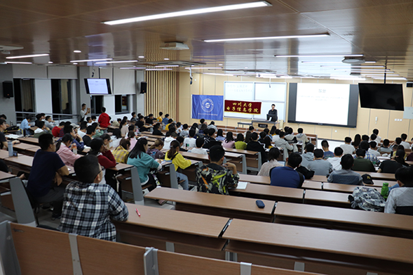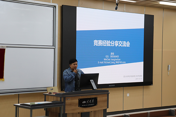 首先,电子科技园王治铭主席对前来参加的同学们表示欢迎,向同学们介绍了锦电杯以及五粮春杯的相关信息,随后,邀请唐俊和邱峻寅同学向同学们分享参赛经验。唐俊同学向同学们分享了自己参赛的秘诀,要学会寻找资源,勤于动手和善于举一反三。接着,邱峻寅同学向同学们展示并分析了一些以往的比赛题目,令同学们建立了一个良好的解题思路。除此之外,他还分享了自己的大学经历并借此提醒同学们要在专业课上下功夫,以备将来之需。晚上21:00,锦电杯、五粮春杯经验分享讲座正式结束。