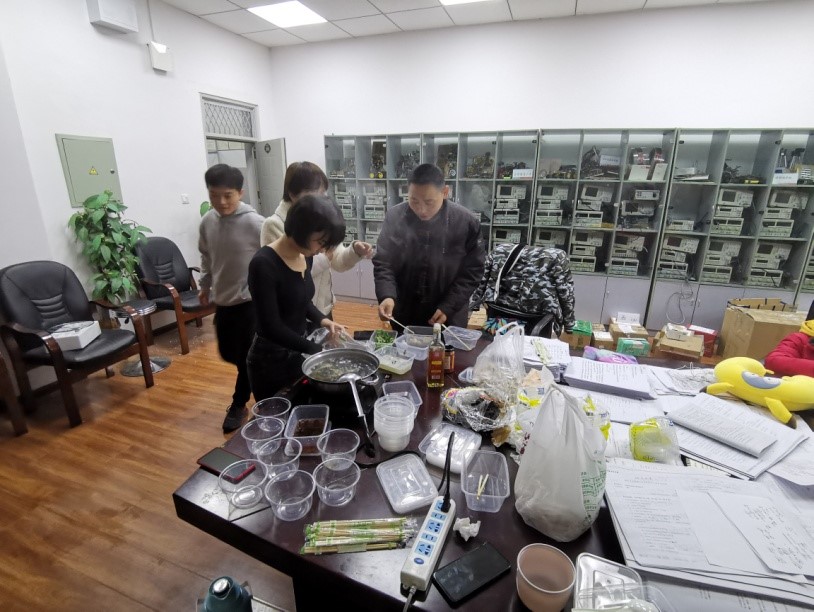 在办公室里,老师们和研究生学长学姐们准备热气腾腾的饺子、馄饨,鼓励同学们克服冬日的寒冷,持之以恒、坚持不懈,为自己的未来奋力拼搏,还和同学们认真交流了备考的心得,给予了很多宝贵的建议,并祝愿同学们能够取得自己心仪的成绩。