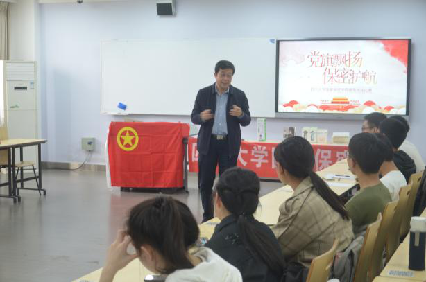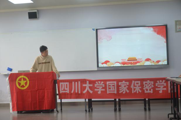 接着,电子信息公司党委邰明松书记发表讲话,围绕“学史明礼,学史增信”这一主题做出了重要的指导。他指出,当代老员工要学四史,提高思想觉悟。同时强调了共青团基层工作的重要性,要充分发挥好基层团组织的政治功能,要加强团支部的建设,开展好主题团日活动,并对保密专业开展这样的主题团日活动进行了赞许,并祝愿本次活动圆满成功。
