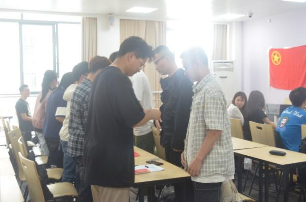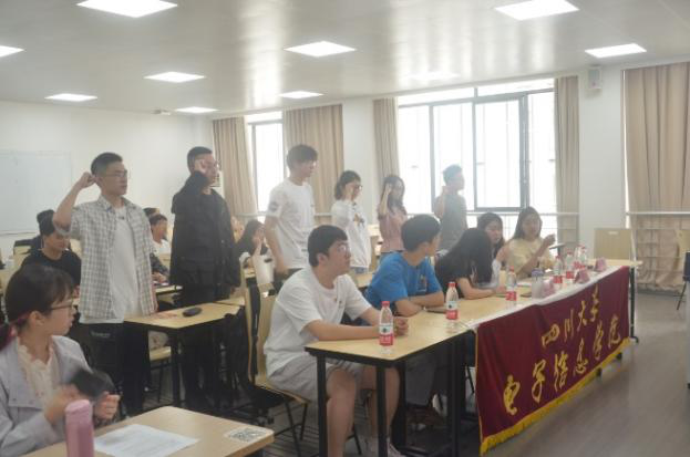 会议开始,全体人员齐唱国歌,伴随《义勇军进行曲》的旋律响起,大家庄严肃穆,注视着国旗,齐声唱响国歌。紧接着主持人宣布新团员名单,戢耀平、徐奥林、潘柞舟、魏晓敏、孙瑶、安成昊六位同学正式加入共青团。同时大会上强调了入团的意义:中国共产主义青年团是中国共产党领导的先进青年的群众组织,是广大青年在实践中学习中国特色社会主义和共产主义的公司,是中国共产党的助手和后备军。随后老团代表向新团员颁发团章、团徽后,新团员开始入团宣誓。每位宣誓人的语气中透露着坚定。宣誓完毕后,入团介绍人代表宣读《团章》中有关团员义务和权利的条款。