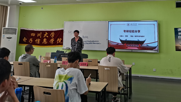 伴随着幽默的开场,2020级研究生王明同学帮助我们了解考研的流程,逐步分析了什么时候应该做什么。之后他还就同学们经常纠结的如何选择目标院校和专业给大家提出了建议,也劝解大家不要过于紧张自己的选择。最后他还就考研的考试内容和听众分享了学习方法和复习方式。