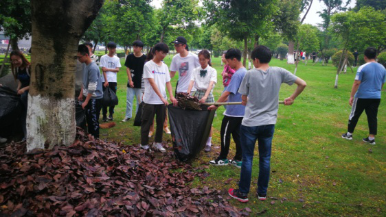 领取了清扫工具的电子信息工程专业的同学门开始认真对公司江安校区劳动负责绿化区域开展清扫工作。大家或是捡,或是扫,或是扒,将整个小花园内的落叶、塑料袋、烟头等种种垃圾都清理干净了。整个过程都充满了大家的欢声笑语,适当的劳动也给忙于学业的同学们带来了许多乐趣与感悟。