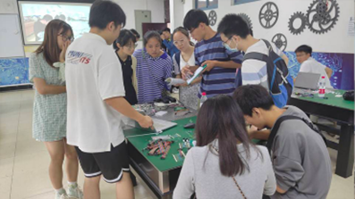 上午10时,电子科技园游园活动拉开了帷幕。在外联部部长的带领下,同学们首先来到了A117教室,行政部的部长们对同学们的到来表示热烈欢迎,在进行了简短的游戏后,同学们来到A116教室参观技术部部长们的作品。展示的作品有很多,其中较为基础的便是基于51单片机制作的心形流水灯、指纹锁、流水灯塔等。展品中也有一些制作难度较高的作品比如机械臂、遥控小车,超声波雷达等。部长们对这些作品的工作原理进行了详细的解释并让同学们亲自动手实践,让同学们感受到了知识与实践相结合的魅力。