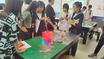 技术部戴卓言同学介绍灯塔和光立方 |