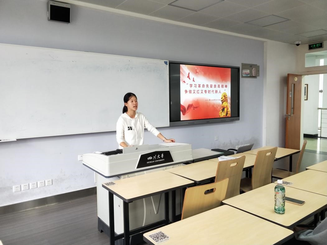 活动伊始,二班的团支部书记冯弋格同学进行发言,她强调了老员工学习革命先进事迹的意义,并向大家介绍了川大员工江竹筠的革命故事,随后王之尹、胡兆银、刘昕昊等同学分别介绍了恽代英、王右木、杨闇公的伟大事迹,先辈们坚定的革命信念与不屈的斗争精神感动了在场的每个人,几位同学慷慨激昂的讲述也让大家眼里泛起泪花。