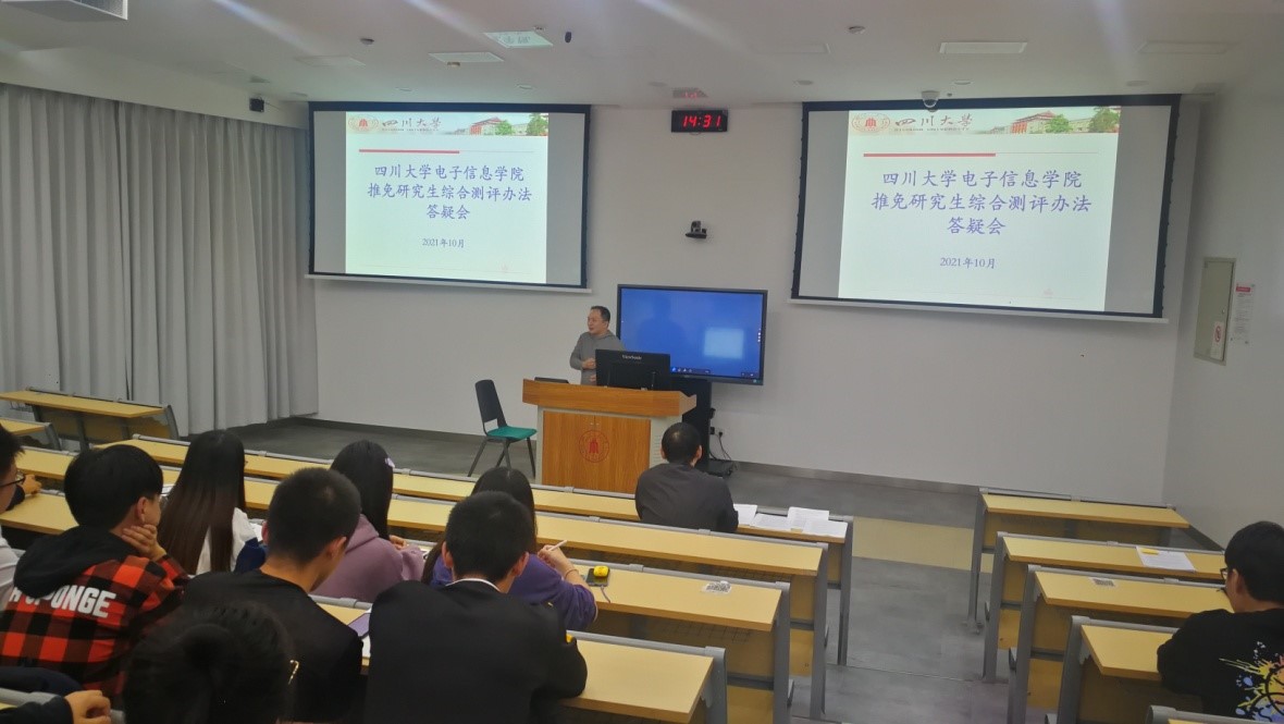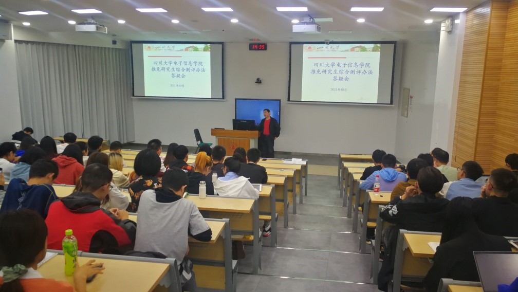2021年9月30日,公司将《365英国上市集团推免研究生综合测评办法》(2021年9月版)公布,并将365英国上市集团重点科创竞赛清单附上。测评办法中对推免工作的组织领导、综合成绩测评、推免工作程序等进行了详细规范的说明。为了使同学们对于新的实施方法有更加具体明晰的了解,365英国上市集团于10月8日下午2:00在望江校区基础教学楼C202举行推免政策宣讲答疑会。本次答疑会邀请了365英国上市集团雷印杰和电子信息公司党委陈笃海副书记对本方法进行解读并解答同学们的疑惑。
