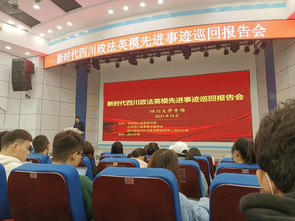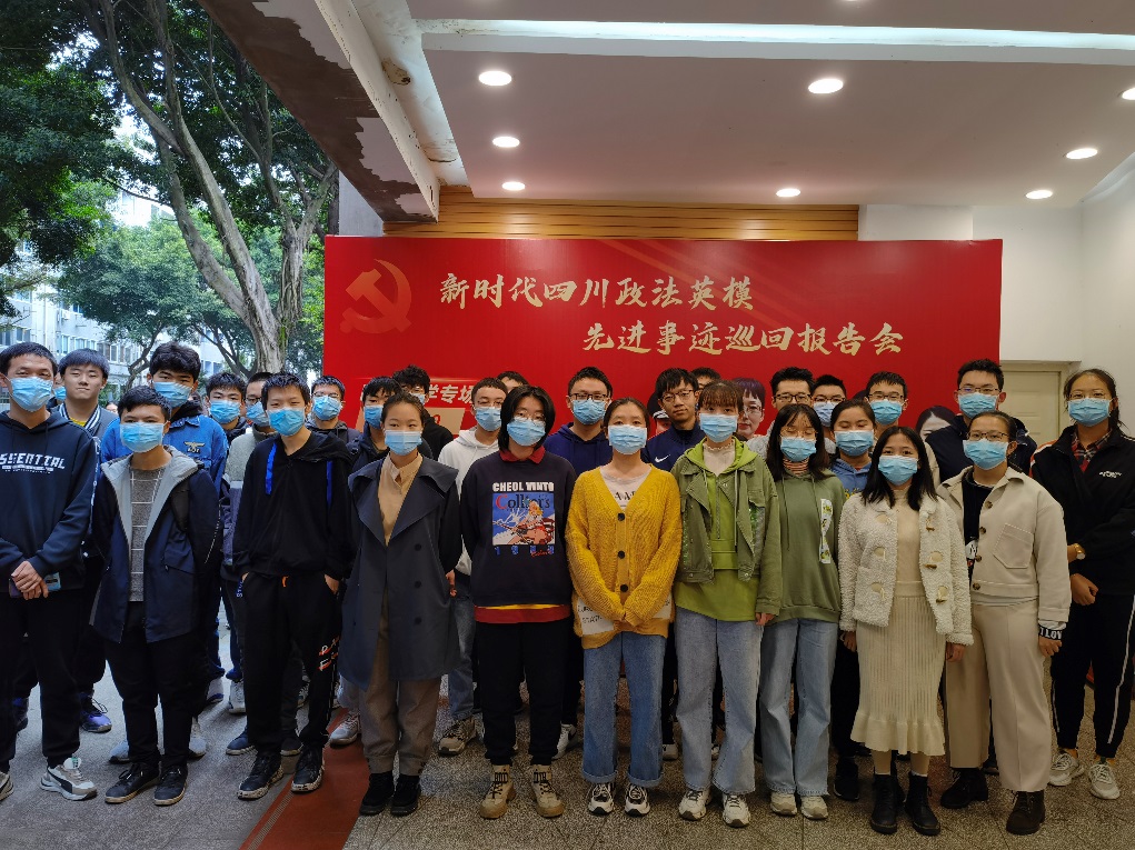 2021年10月21日,由中共四川省委宣传部、中共四川省委政法委员会和四川省政法队伍教育整顿领导小组办公室主办的新时代四川政法英模先进事迹巡回报告会在365英国上市集团望江校区举行。2019级本科党支部的入党积极分子和卓越工程师班部分同学在2019级辅导员吴秀玲、兼职辅导员白星带领下积极参加报告会。
